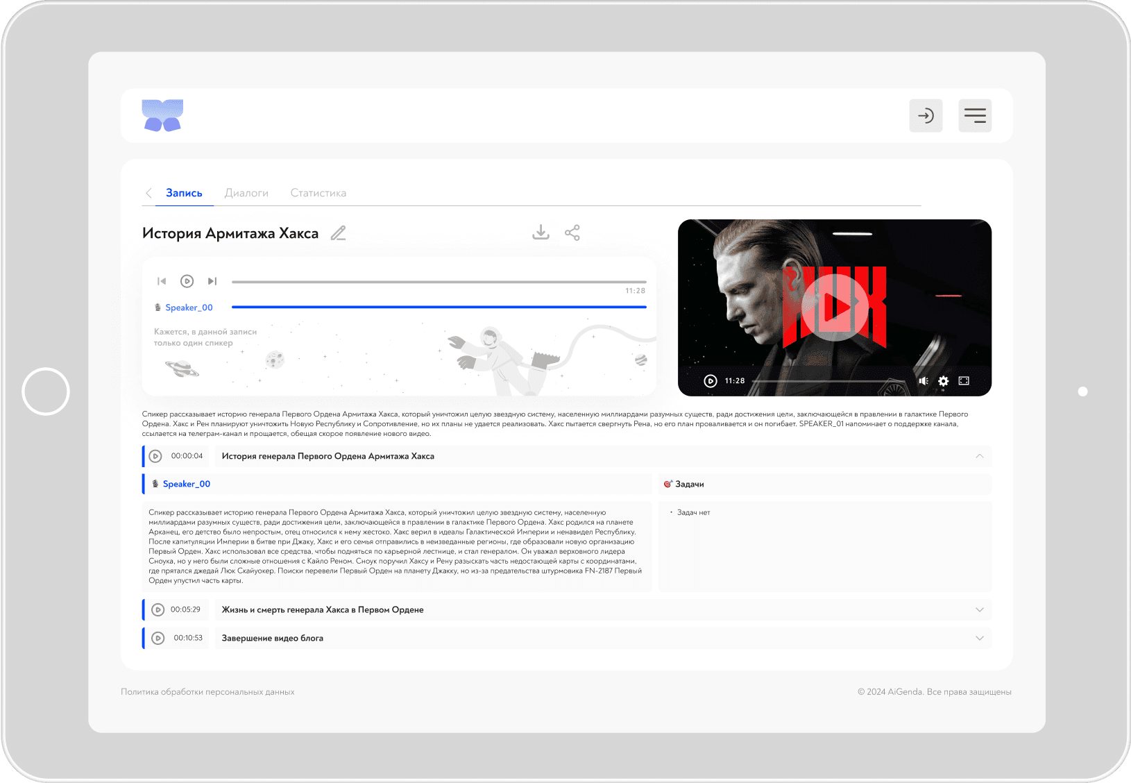 You can use AiGenda for your daily meetings, as well as for processing educational lectures and conferences. Notes will help you save time and easily navigate through the materials
